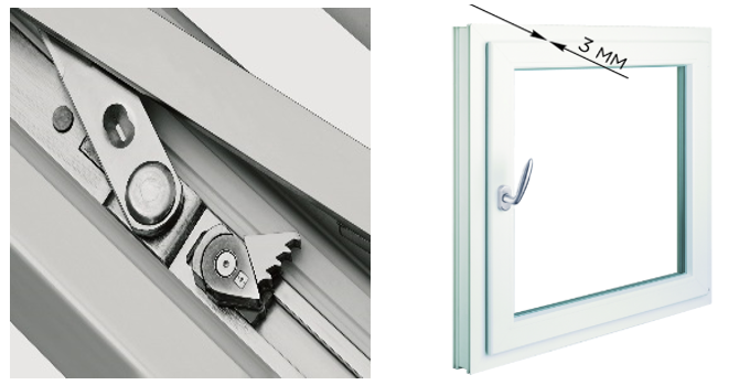 Более эффективным и надежным решением является многоступенчатый механизм наклона MSL. Это дополнительный элемент, устанавливается на фурнитуре и позволяет использовать 4 дополнительных положения наклонна створки.