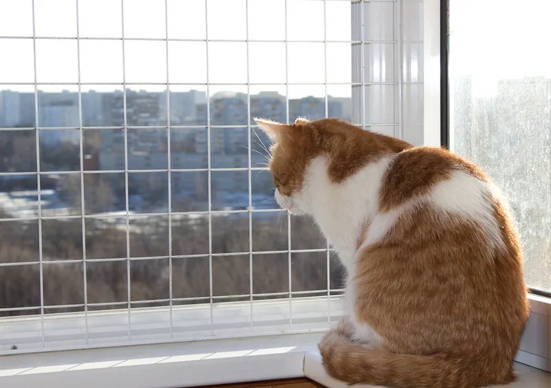 Поэтому, если в доме, где живет кошка, часто открывают окно, необходимо обеспечить его надлежащую защиту. Одним из распространенных решений является москитная сетка. Эффективность такой сетки зависит от качеств материалов и сборки. Крепления обычной противомоскитной сетки ненадёжны, они не выдерживают нагрузки от веса питомца – кошка может прыгнуть на сетку и выпасть вместе с ней.