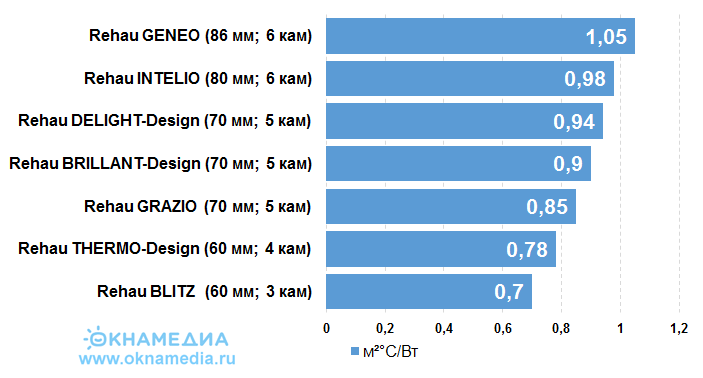 Сопротивление теплопередаче на примере широкой линейки окон REHAU*