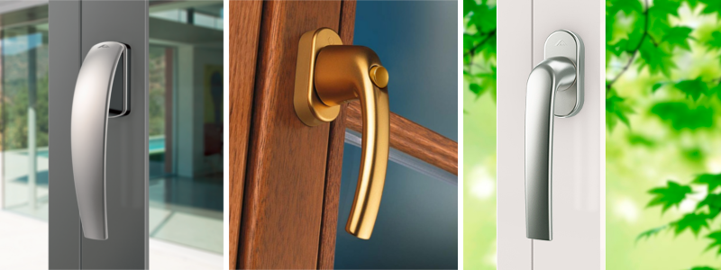 Фото: Серое окно и стальная ручка и петли. Темно-коричневое окно и золотая ручка и петли. Белое окно и стальная ручка и петли.В частном домостроении есть возможность применять окна нестандартных форм: арочные, круглые, трапециевидные. Стоит помнить, что технология производства таких окон более сложная, при нарушении процесса впоследствии с таким окном могут быть проблемы.