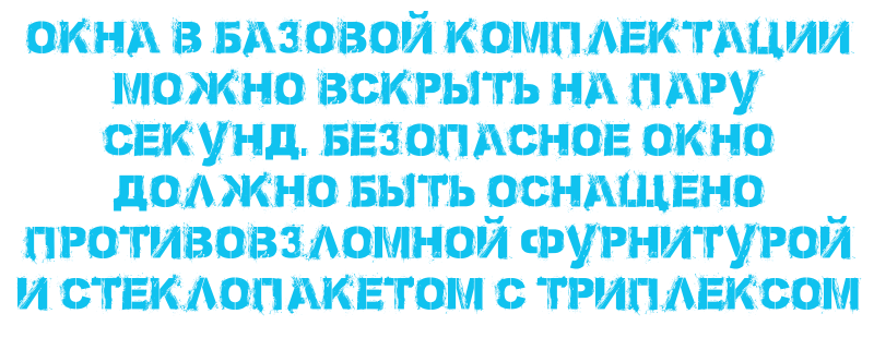 Окна в базовой комплектации можно вскрыть на пару секунд. Безопасное окно должно быть оснащено противовзломной фурнитурой и стеклопакетом с триплексом.