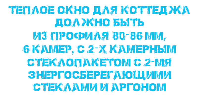 Теплое окно для коттеджа должно быть из профиля 80-86 мм 6 камер, с 2-х камерным стеклопакет с 2-мя энергосберегающими стеклами и аргоном.