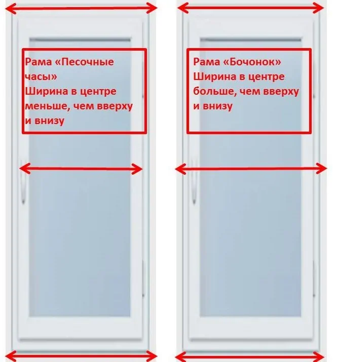 - Рама имеет форму песочных часов – в центральной части меньше, чем по углам. В этом случае створка будет цепляться за раму при открывании/закрывании.