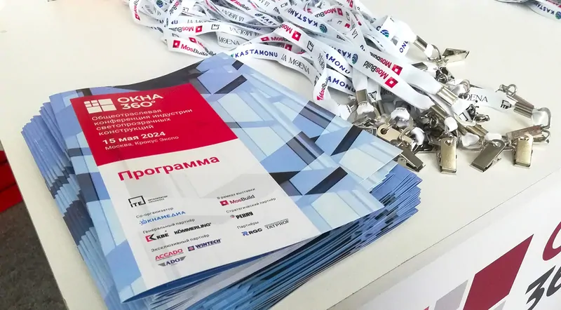 Фото: бейджи и программа конференции «Окна 360°», © oknamedia