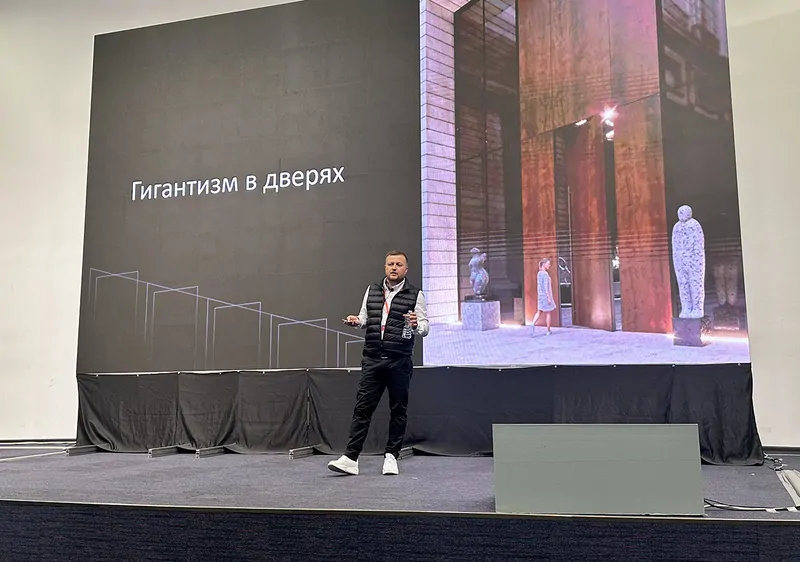 Фото: Гигантизм в дверях конференция «ОКНА 360°» © oknamedia