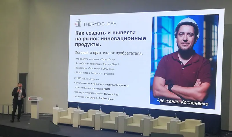 Александр Костюченко, Thermo Glass, на своем опыте рассказал присутствующим, как создавать и выводить на рынок инновационные продукты - история и практика от изобретателя.
