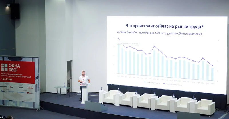 Дефицит кадров в стране в 2023 оказался высоким, при низком уровне безработицы. Это серьезный осложняющий фактор для экономики. Для оконной отрасли тема дефицита кадров очень актуальна. Спикер предложил решение возникающих кадровых проблем, дополнительно сформулировав варианты решений и действий по повышению профессионализма монтажников.