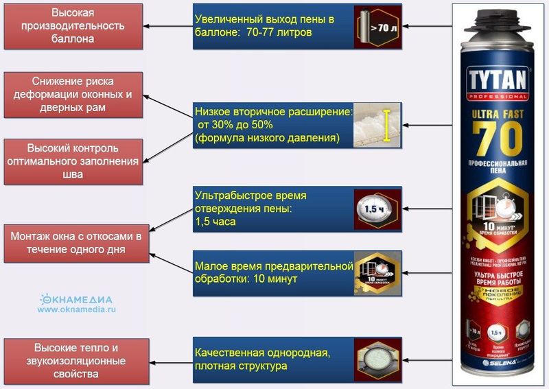 Фото: преимущества профессиональной монтажной пены TYTAN Professional Ultra Fast 70*