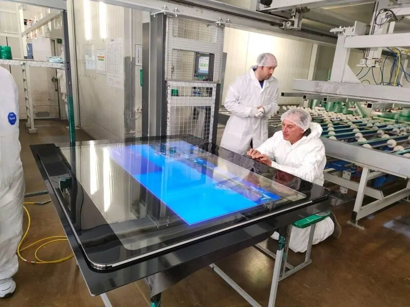 Все эти нюансы были проработаны, и всего за полгода технологи нашего центра исследований и разработок создали уникальный стеклопакет. Он собирается вручную с участием специалистов по телевизионной электронике.