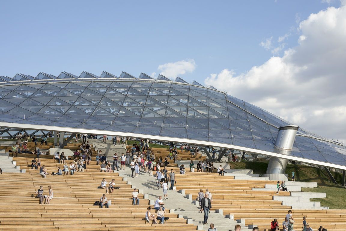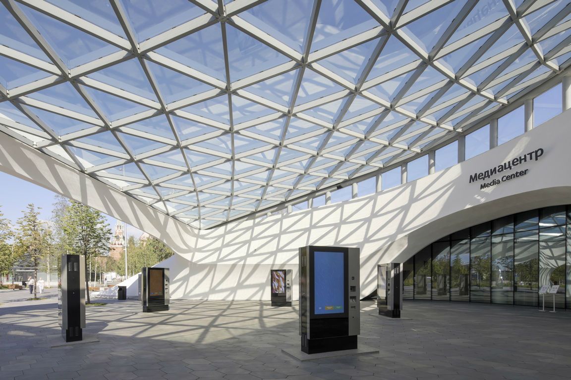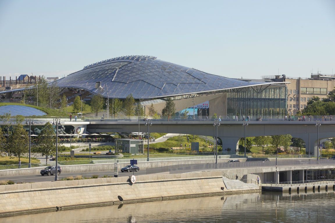 Уникальный научно-познавательный проект в самом центре Москвы наглядно демонстрирует природное многообразие всех климатических поясов и природных зон России, а также новейшие возможности по их исследованию и изучению с помощью инновационных музейно-экспозиционных технологий и подходов в архитектурно-ландшафтном пространстве. Симбиоз науки, технологий, городской и ландшафтной архитектуры, музейного дела позволил «Зарядью» выйти на первые строчки международных экспозиционных рейтингов. Многообразие стекольных инноваций, примененных при строительстве парка, сделал его, в том числе, и своеобразной экспозицией возможностей стекла в современной архитектуре.