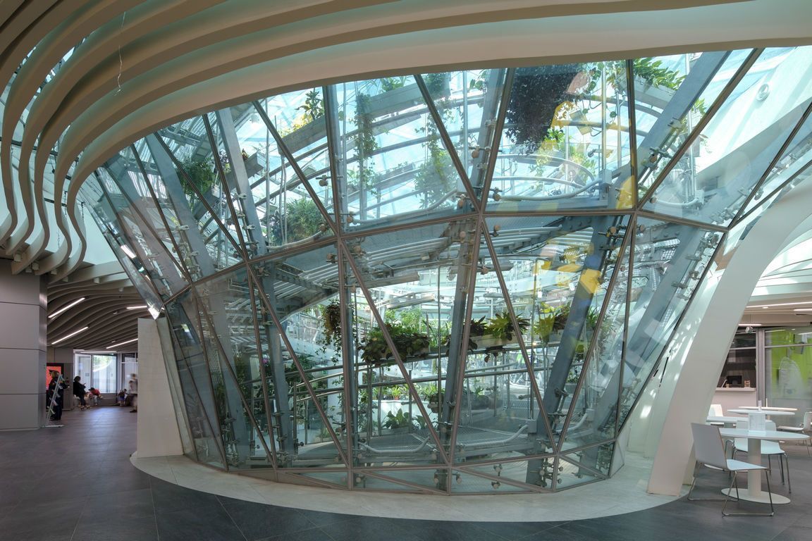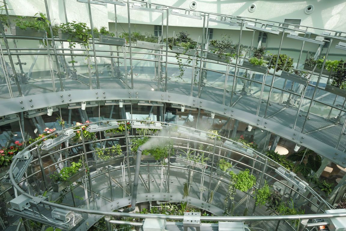 © Фотобанк ЛoриОн предусматривает питание корневых систем через специальные трубки, куда подается питательный аэрозоль, а также обильное использование естественного света, в чем помогает массивное остекление закрытого пространства. Флорариум входит в число объектов научно-исследовательского центра Заповедное посольство. Это первый проект с применением абсолютно нейтрального стекла без оттенков Planibel Crystalvision c идеальной цветопередачей.
