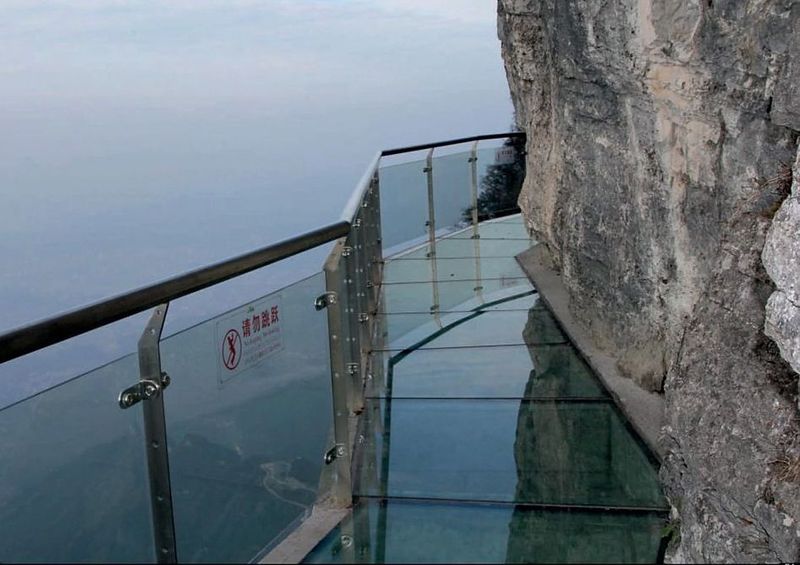 Фото: "Дорога страха" – первый стеклянный мост, построенный на высоте более 1000 мМожно только догадываться об ощущениях ступившего на дорогу туриста. - «Извивающийся дракон» – стеклянная тропа, которая опирается на отвесный утес только с одной стороны. Лишь небольшая ее площадь – непрозрачная, но большинство посетителей так и не решаются наступить на прозрачную часть.