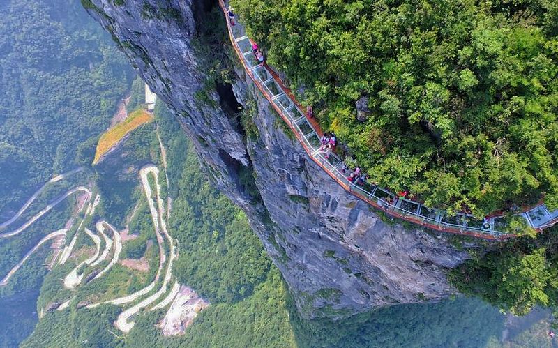 Стеклянные тропы у вершины горы Тяньмэнь находятся на высоте 1400 м в Национальном парке Чжанцзяцзе.